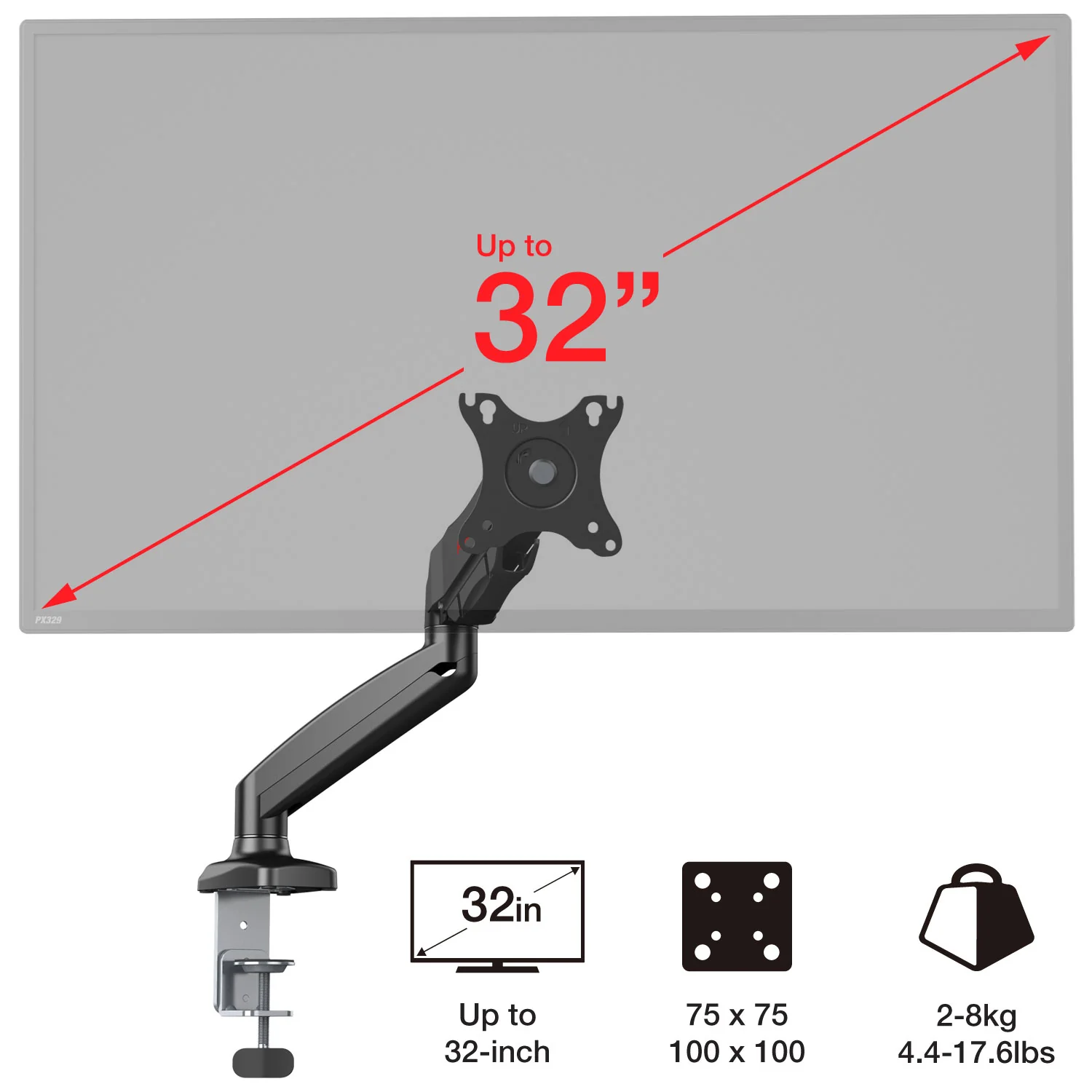 PS1D is a dual monitor gas spring mount from Pixio. The perfect accessory to both your Pixio Gaming Monitor. The counterbalance gas-powered spring arm allows for simple height adjustment without the use of tools and is fully adjustable allowing you to set the monitor to almost any viewing angle. Choose from either desk clamp or desk grommet option. It also includes an integrated cable management system. PS1D can fit two screens up to 32" in size each, weighing between 4.4 lbs and 17.6 lbs and compatible with either VESA 75x75mm or 100x100mm.
